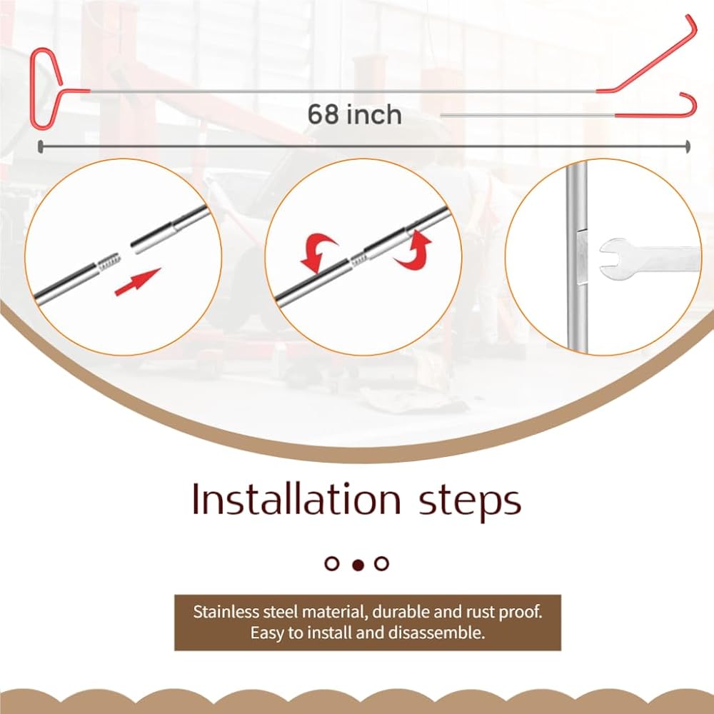 【68-inch Long Reach Tool】68" 5th Wheel Pin Puller with Hook eliminates the need to crawl under your trailer. Multi-angle hook design allows for easier pulling and moving of objects.