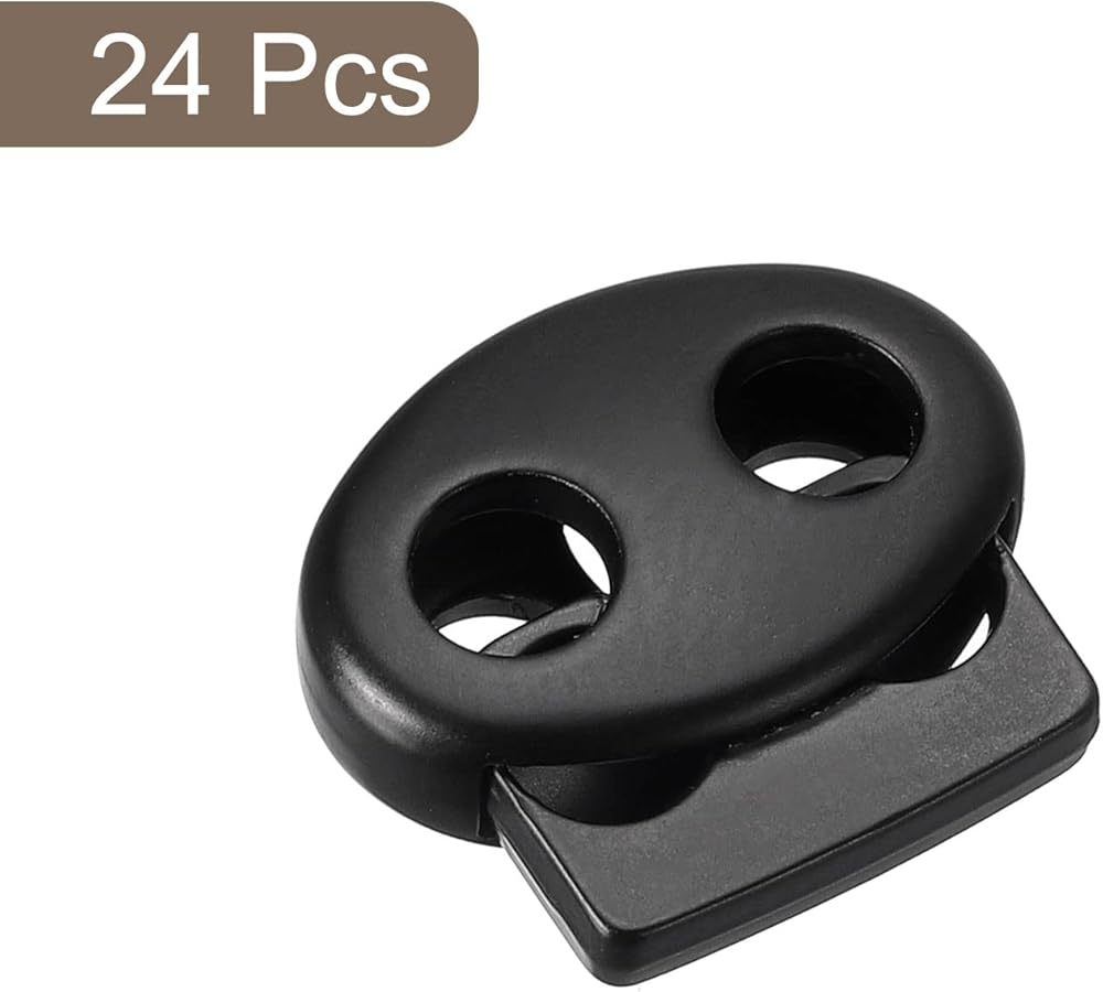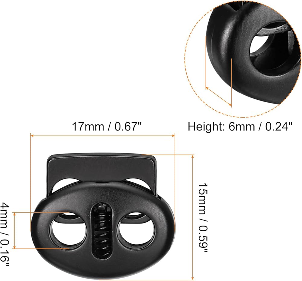 [Spring Cord Lock End Toggle] - The size of this bright silver cord lock is 17x15x6mm/0.67"x0.59"x0.24"(L*W*H), the hole diameter is 4mm/0.16", and the package content is 24pcs double hole cord locks.