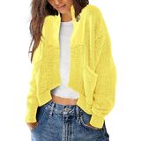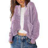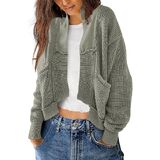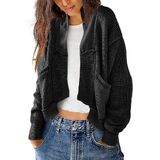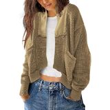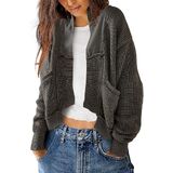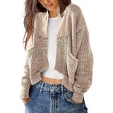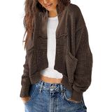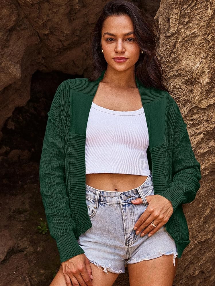 • Features: Long sleeves with elbow patching, two side pockets, slouchy, cropped fit, open-front style, defined seaming, cropped cardigan, casual loose fit, cable knit sweater women, short cardigans for women