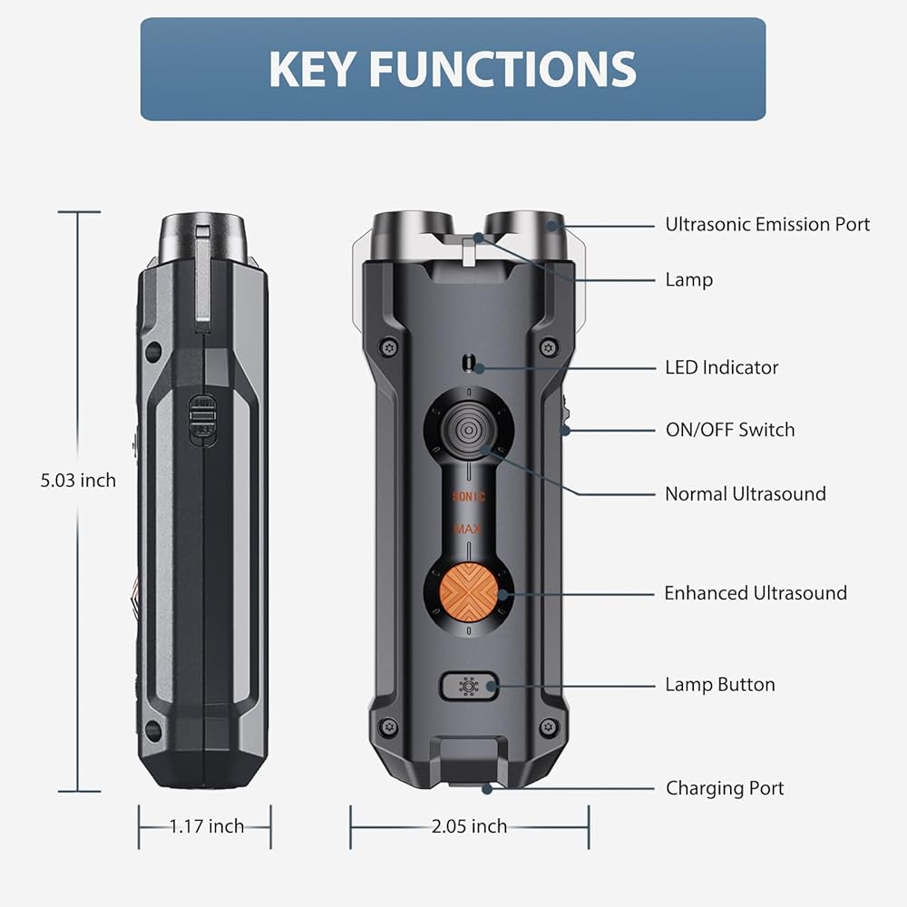 [Easy to use and suitable for any solution]Our normal ultrasound mode meets the daily dog training needs. For immediate suppression of unwanted behavior, the enhanced mode and flashing mode work best together. The equipped bright flashlight ensures your safety during nighttime walks.
