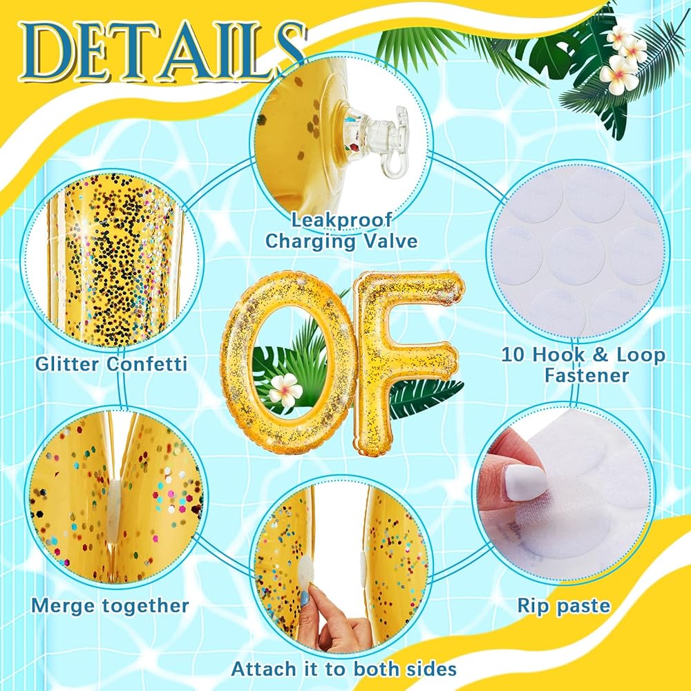 The letter pool float is designed in gold color, which is appealing and exquisite, making your party become more impressive.