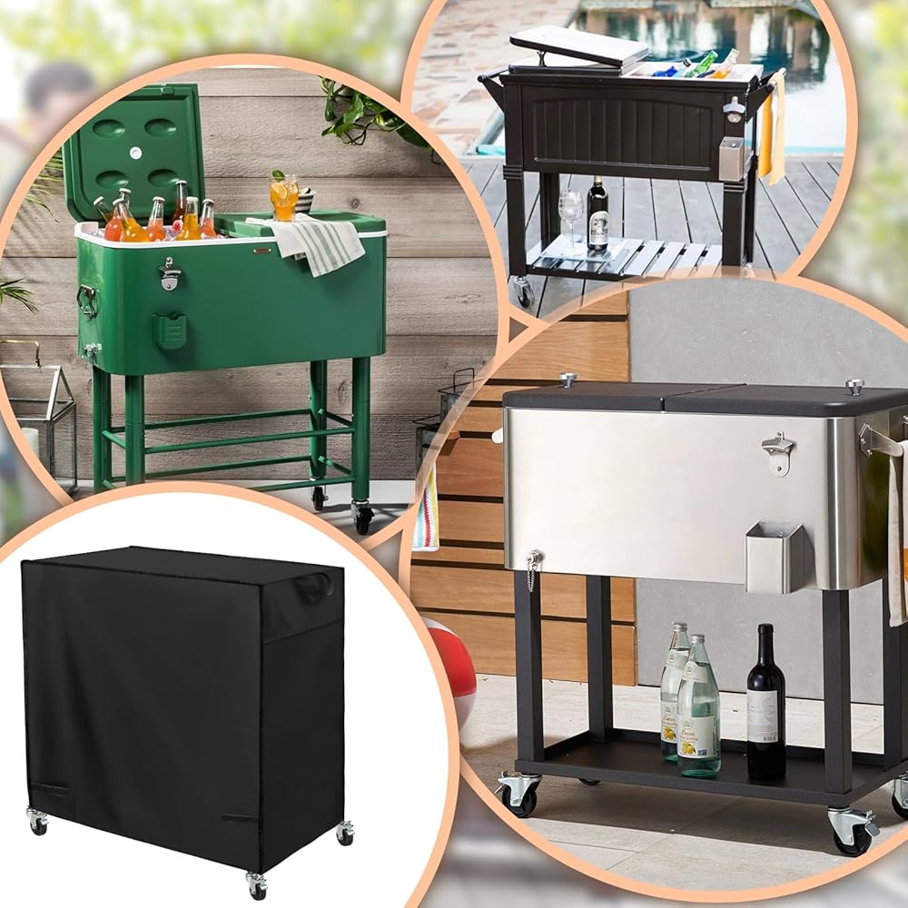 All-Weather Protection: Outdoor cooler cart cover can protect your furniture from rain, snow, dust, dirt, sunlight and other outdoor objects.It also can insulate the heat to keep the ice inside the cooler cart for longer.