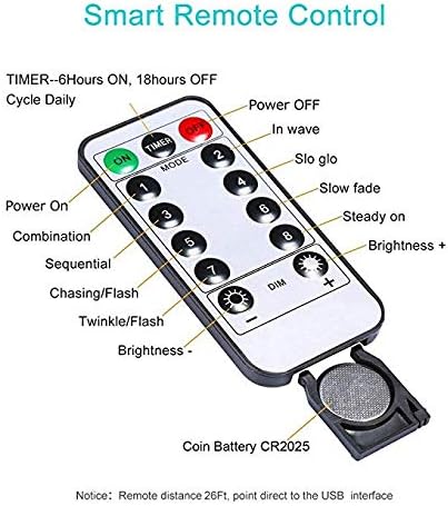 Remote control with Timer function: the lights are controlled by remote, save you a lot of troubles. It is much more convenient to control with timer function. You have 8 different modes of light effects, isnot it cool?
