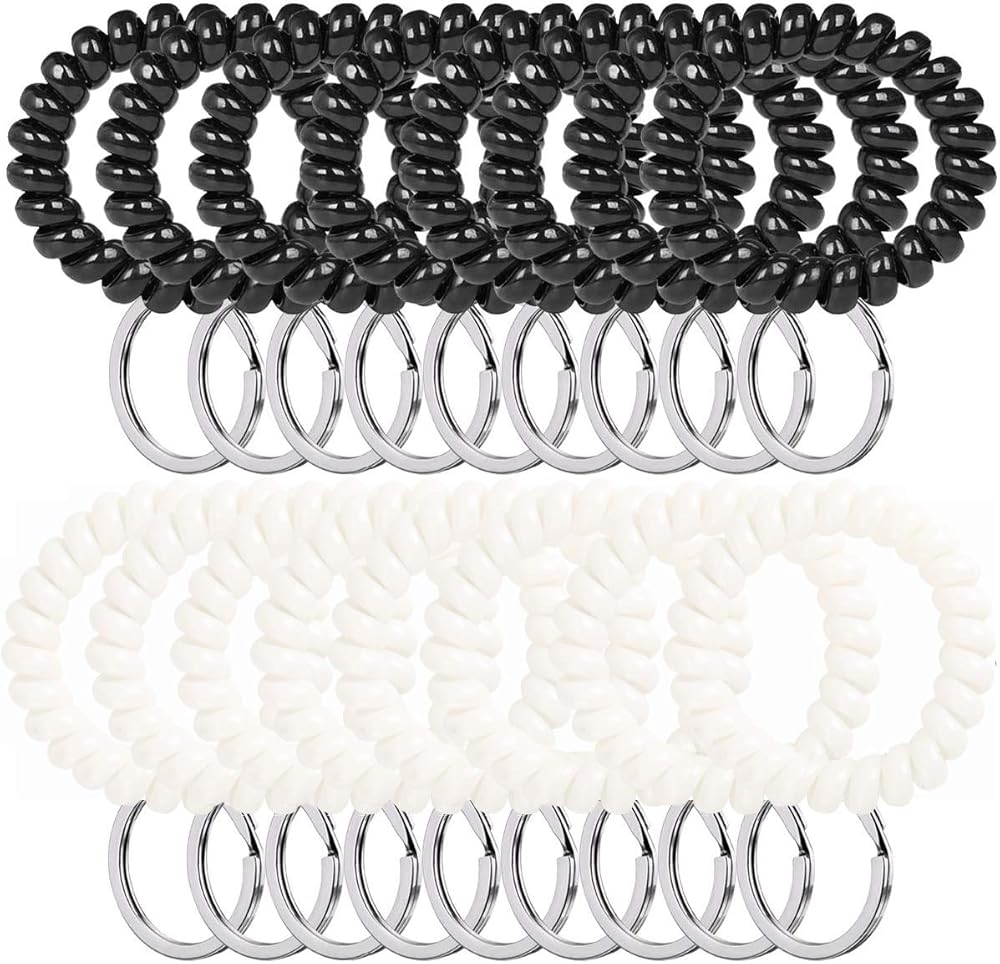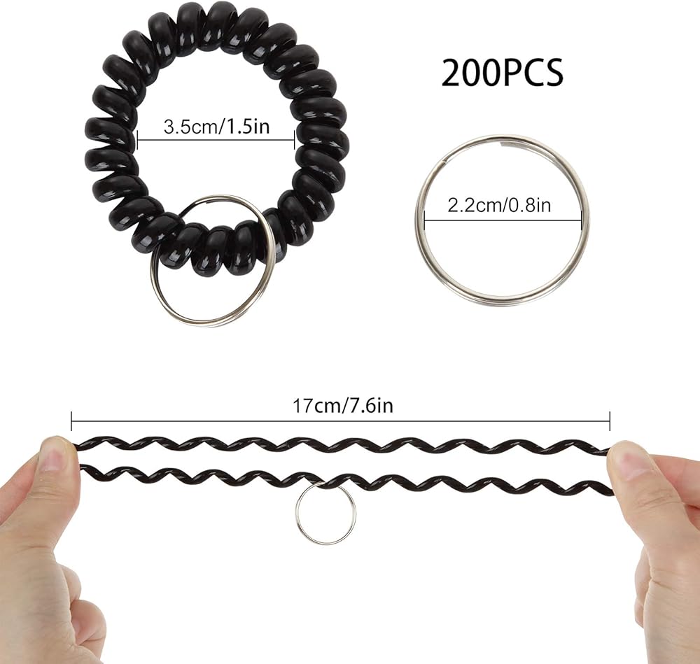 YOUNTHYE 100 pcs Wristband Keychains, Plastic Coil Stretch Elastic Spring Spiral Bracelet Key Ring Use for Pool, ID Badge
