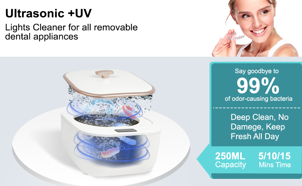 【Ultraviolet Desing 】The ultrasonic cleaner made of high performance ultraviolet LED lamp beads, fast release high intensity ultraviolet, instant crack bacterial NDA, destroy bacteria, by utilizing ultraviolet rays, thereby eliminating 99.9% of bacteria, it leaves items hygienic. Between the vibrations and the lights, your dentures come out looking clear while also eliminating any lingering odor.