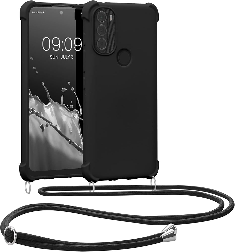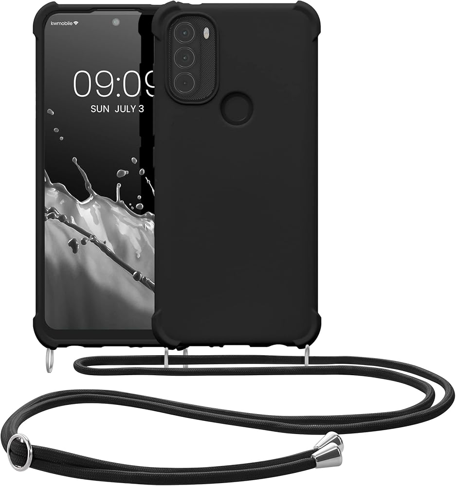 kwmobile Crossbody Case Compatible with Motorola Moto G71 5G Case - TPU Silicone Cover with Strap - Black