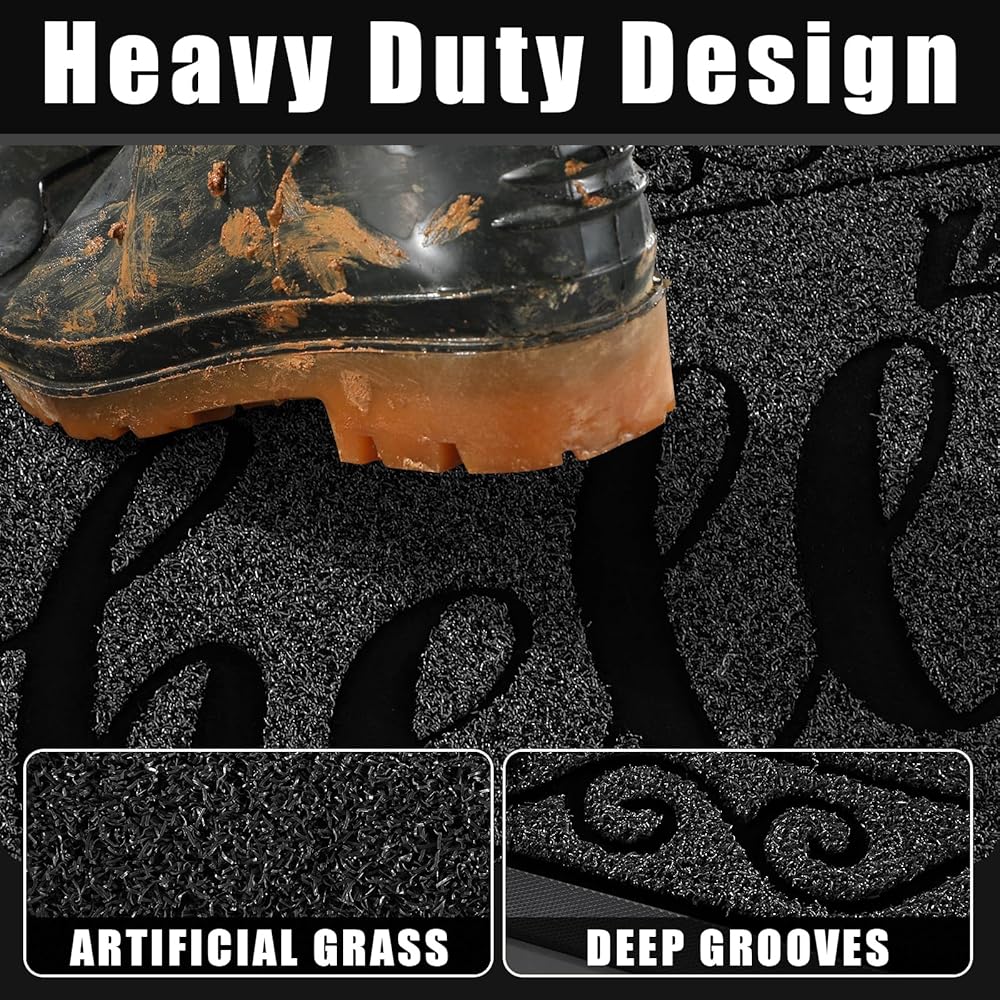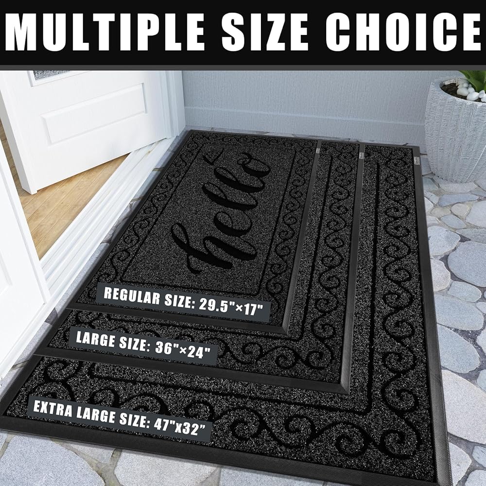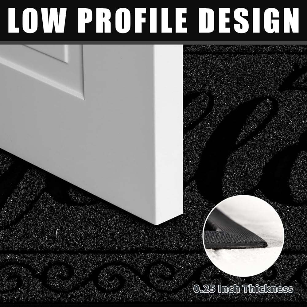 Yimobra Welcome Mats for Front Door 29.5x17, Heavy Duty Waterproof Outdoor Door Mat Outside Entrance, Non-Slip Low Profile Indoor Entryway Mat for Garage Patio, Black