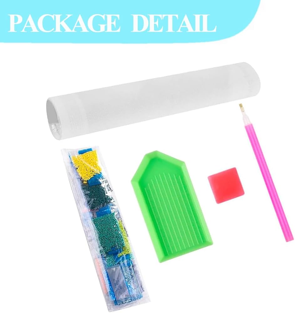 【Package Include】1 canvas without frame, 1 diamond sticky pens, 1 adhesive and 1 plastic tray(we added an additional 30% of diamonds to prevent the occurrence of insufficient diamonds. )