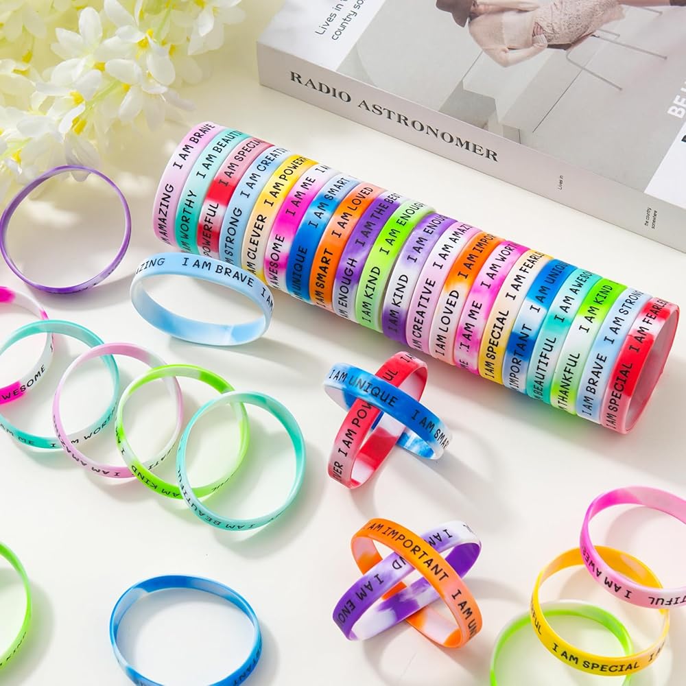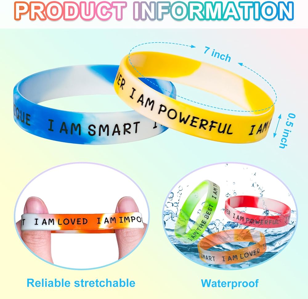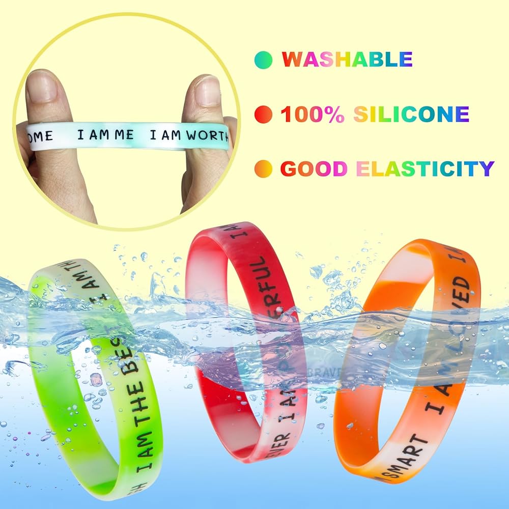 Wide range of applications: The inspirational silicone bracelets come in different colors and are colorful and full of cheerfulness, suitable for birthday parties, student sports, family gatherings, school events, classroom prizes, carnivals, music festivals and other occasions.