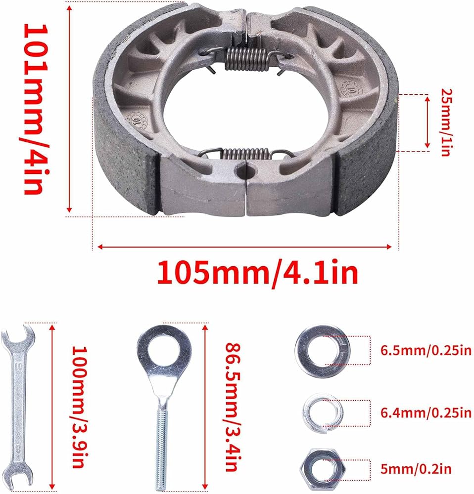 Package Included: 1 x Brake PAD Shoe, 2 x Chain Adjusters Tensioners,2 x Nut,4 x Shim