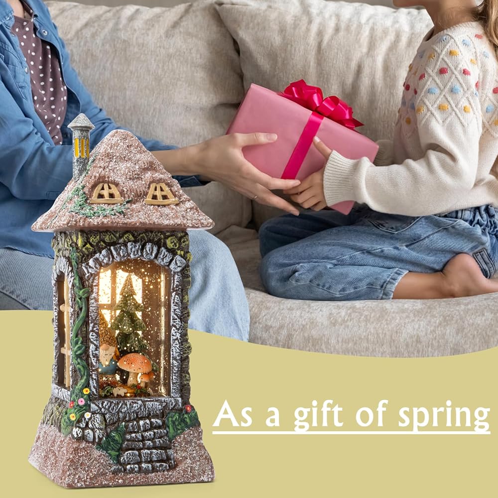 🍄Charming Spring Gnome Snow Globe: This enchanting Spring Gnomes Snow Globe tabletop figurine brings a whimsical touch to your décor, showcasing the charm of spring and summer in an endearing light.