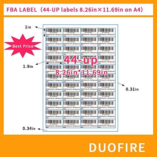 Duofire FBA Label Shipping Mailing Stickers A4(100Sheets, 4400Labels) 44-up Labels 48.5 X 25.4 Mm on A4(1 X 1.9 Inches), White Self Adhesive Shipping Mailing Stickers for Laser/Inkjet Printer