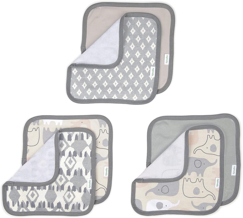 What's cuter than a bundled-up baby in a bathrobe? Your baby in the Ingenuity Clean & Cuddly™ Hooded Baby Bathrobe! The bathrobe's lightweight, soft cotton blend exterior with absorbent terry cloth interior and hood are gentle for baby's delicate skin, and the tacked down waist tie keeps baby all wrapped up for those sweet post-bath time snuggles. Before PJs, this lovable Ingenuity Clean & Cuddly™ Hooded Character Towel will be just the post-bath cozy companion your baby needs. See your baby's face peek out from underneath the sweet elephant animal hood. The towel's lightweight, soft woven terry cloth fabric keeps baby toasty and dry between the bath and jammies. Scrub away the messes of the day with the Ingenuity Clean & Cuddly™ 6-Pack Terry Washcloth Set. 6 soft and absorbent washcloths are perfect for washing baby in the tub or wiping away spills or spit up at meal time. Keep a few washcloths at home and toss the others in the diaper bag so you're ready for cleanup wherever you go!