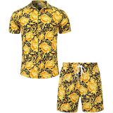 【Mens Short and Shirt Set】 Short sleeve button down shirts+drawstring waistband shorts, the 2 piece shirt and shorts is all over print. luxury print, exquisite, retro and stylish. dress to impress with with this trendy Baroque shirt and short set, perfect for any man looking to make a fashion-forward impression.