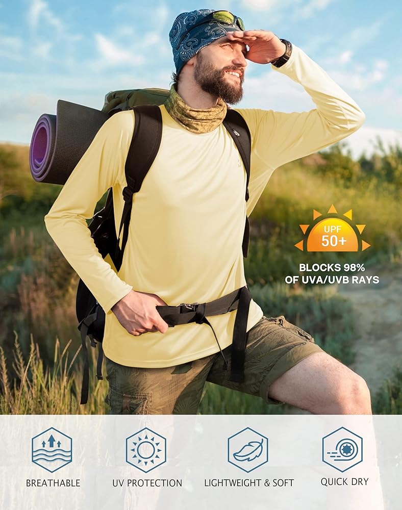 【Moisture Wicking】Breathable, Lightweight, Quick-Drying fabric actively wicks moisture away from the skin, keeping you dry, cool and comfy in running, fishing, workout.