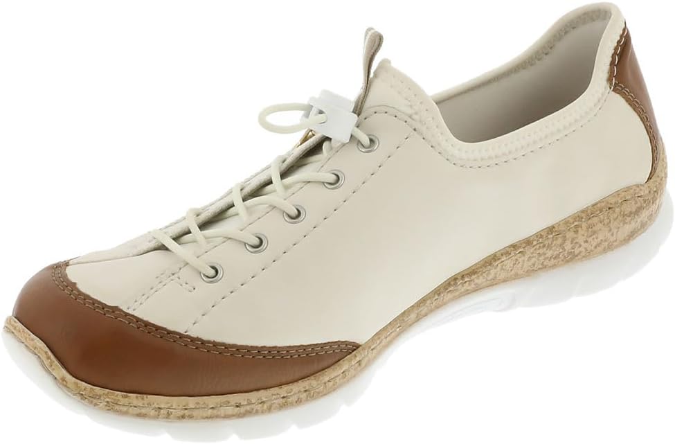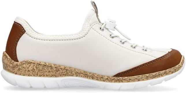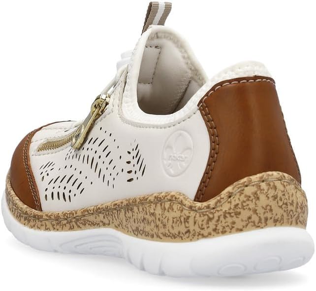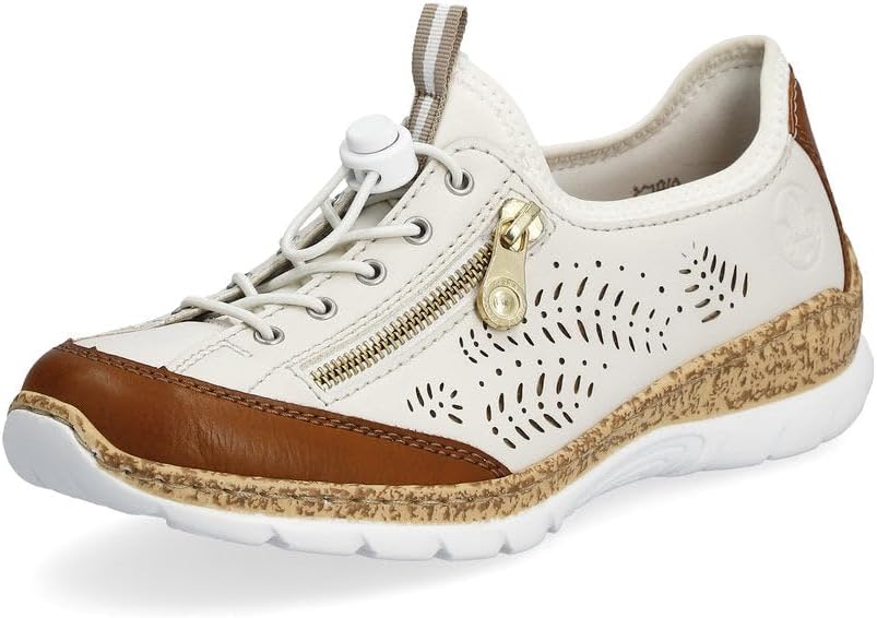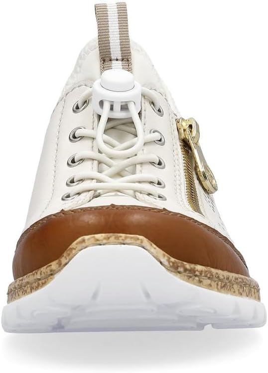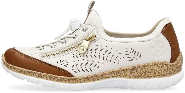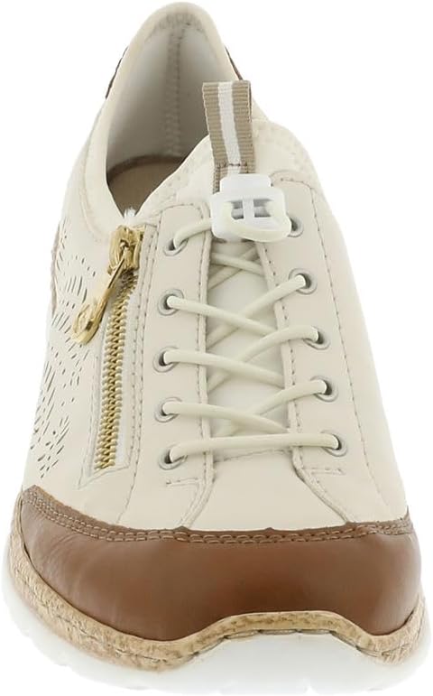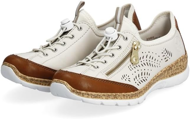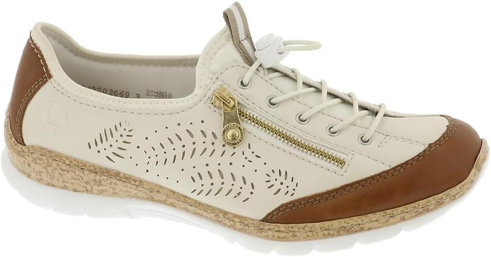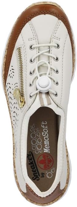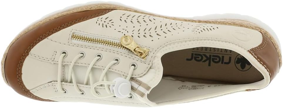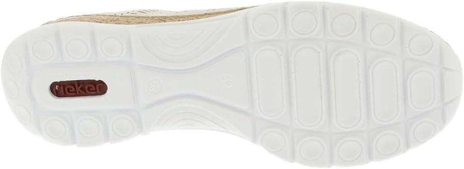 Happy feet, happy life! These light beige shoes by Rieker have been intricately crafted. A bright rubber lacing also ensures that the shoe fits at all times. The stylish decoration is a nice detail. The sole is both shock-absorbing and light, offering a double sense of well-being at every step. Another plus is the extra soft removable MemoSoft insole. Fashionable & comfortable!