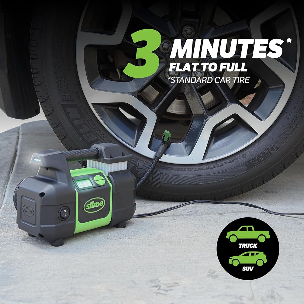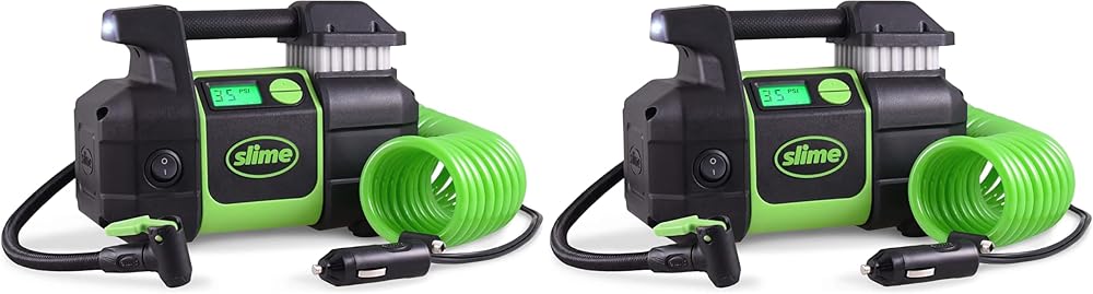 Slime 40063 Tire Inflator,Portable Car,SUV,4x4 Air Compressor,Elite Heavy Duty, Inflate Right Automatic Shut Off, with Digital 99 psi Display, Long Hose and LED Light, 12V,3 min Inflation (Pack of 2)