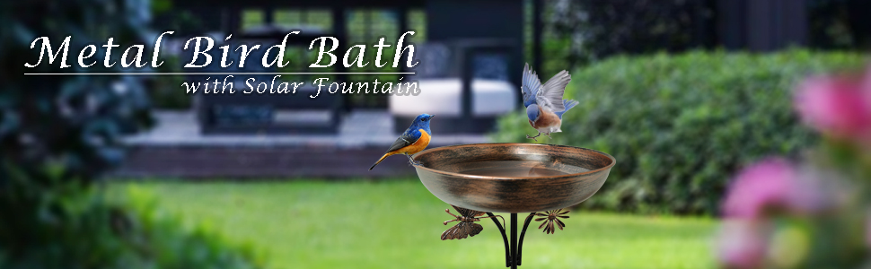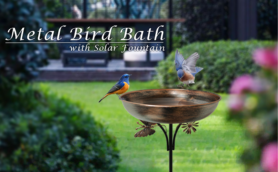 【Bird Bath with Solar Fountain】 Bird baths for outdoors includ a solar-powered fountain that keeps the water moving around without the need of batteries or plugging it in. The fountain has a suction cup on the bottom to keep it from moving around in the bath, giving you and the birds the experience of a lifetime.