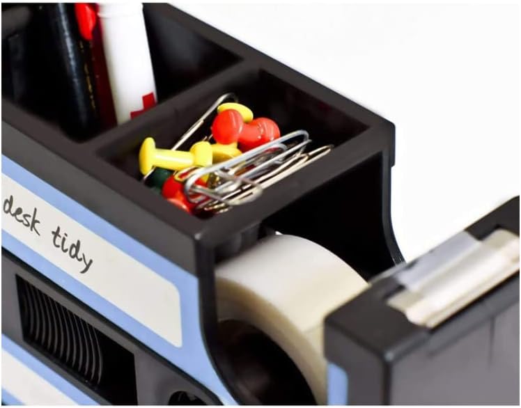 It is not just a pen holder but also a hidden tape dispenser, it can hold up to 30 pens or pencils and small stationery items like paper clips, push pins, elastic bands or staples