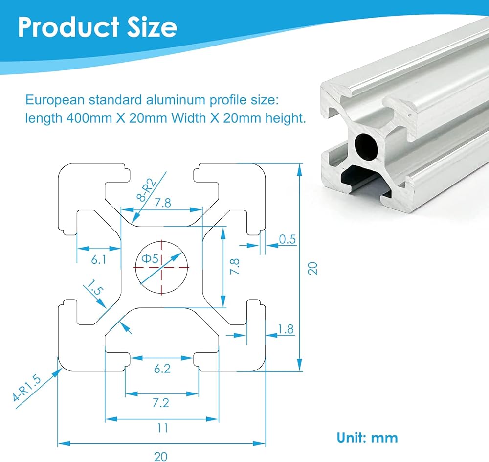 【Easy to install】: T-slotted aluminum extrusion is a versatile and lightweight structure, no fixed position required.you can freely assembled according to your needs. you do not need to welder, reduce design and assembly time. Easy to install with all 20 series fasteners and accessories such as M3, M4, M5 T-nuts and pulleys. (Note: package does not include accessories)