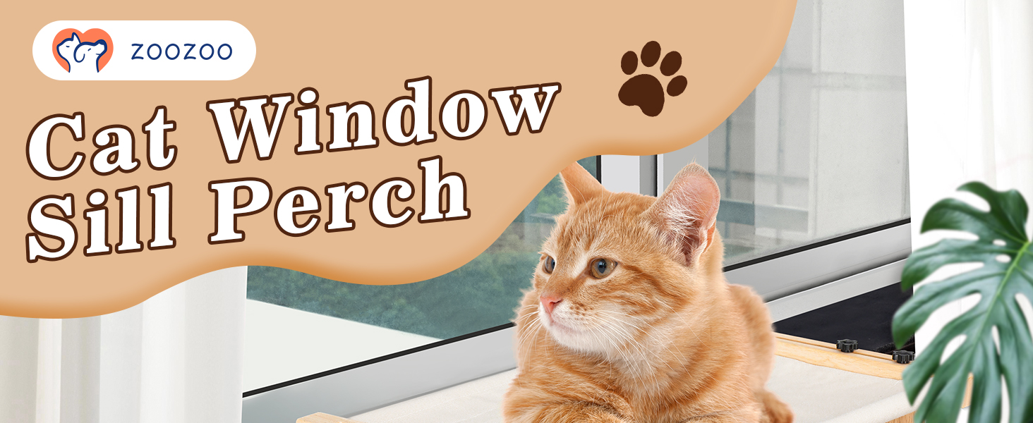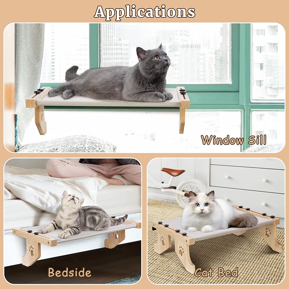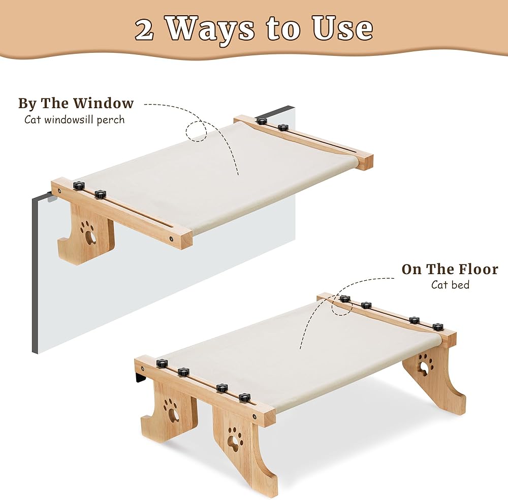 ZooZoo Cat Window Sill Perch Cat Bed, Adjustable 2-in-1 Large Cat Window Hammock Seat with Durable & Sturdy Wooden Frame, Easy to Install Cat Bed for Floor,Windowsill,Bedside or Cabinet(21.7"L -40lb)