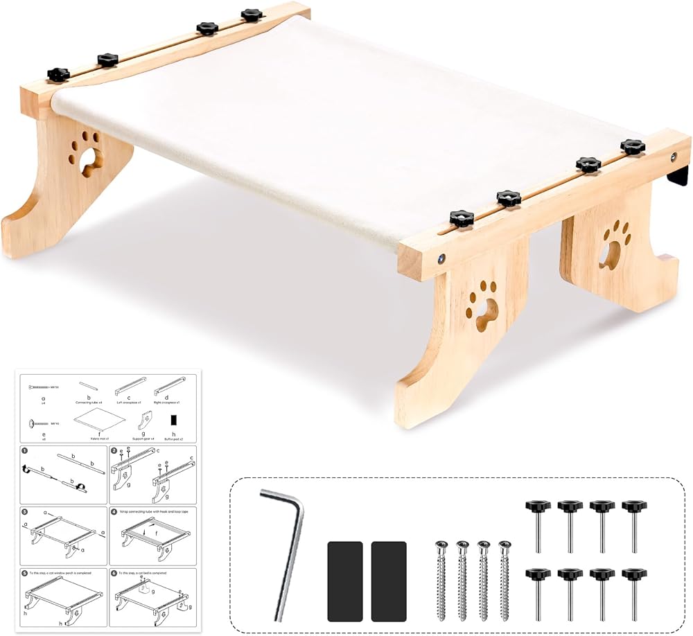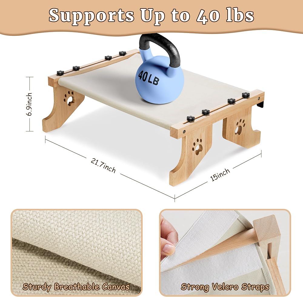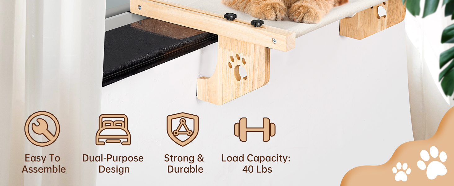 💖STRONG LOAD-BEARING: The cat window hommock is made of thick solid wood and can bear a weight of up to 40 pounds. The fabric material is high-quality linen, which is scratch-resistant and wear-resistant.