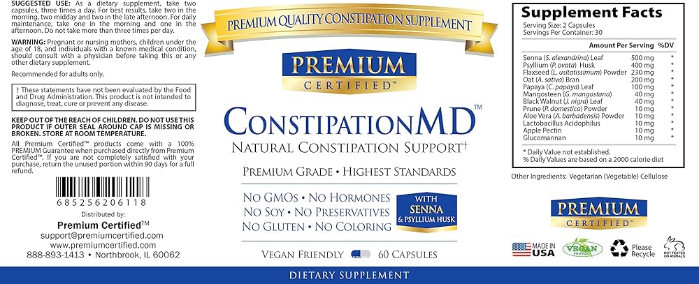 Constipation MD provides high-fiber ingredients to promote regularity and maintain healthy bowel movements. Works gently to soften stools for easier excretion.