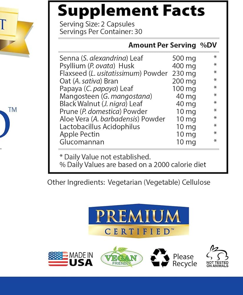 Psyllium Husk, Papaya Leaf, and Oat Bran have been shown to help keep the system regular.
