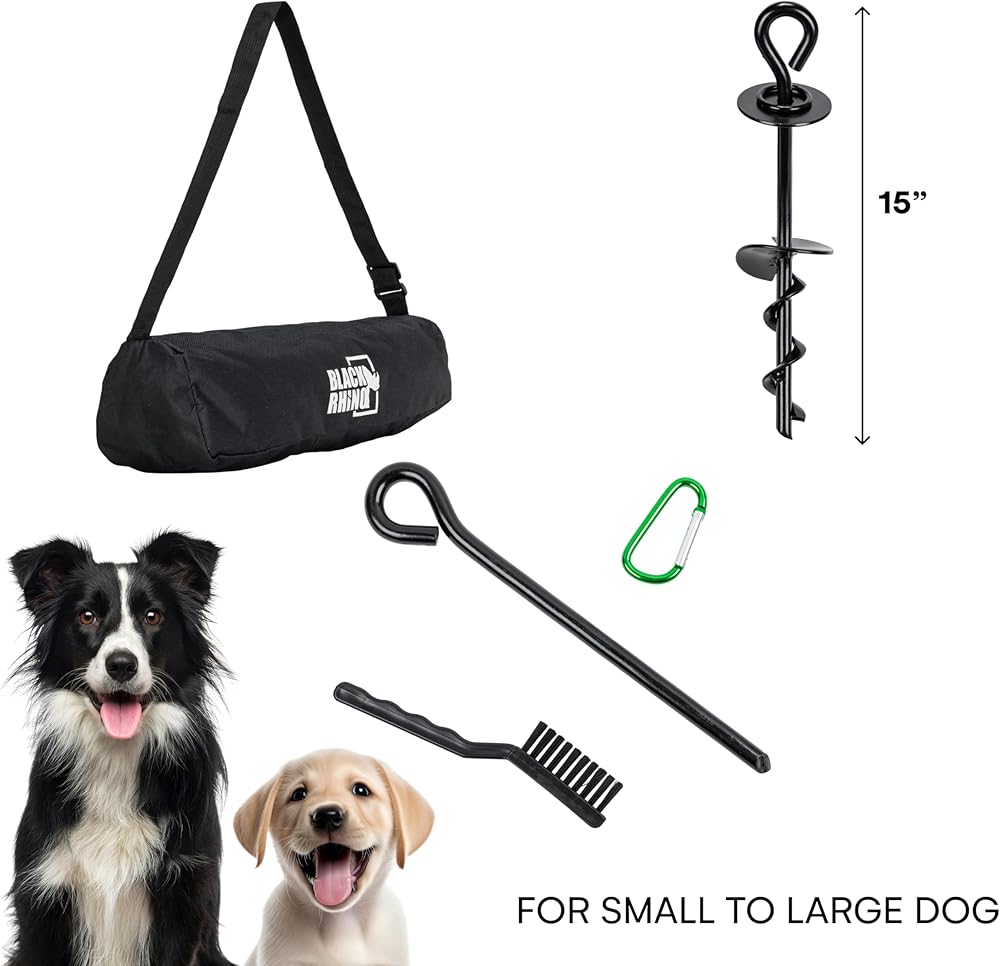 Black Rhino Heavy Duty Dog Tie Out Stake - Strong Ground Anchor for Small or Large Dogs Up to 150 lbs - Outdoor Dog Run for Camping Gear or Beach Accessories