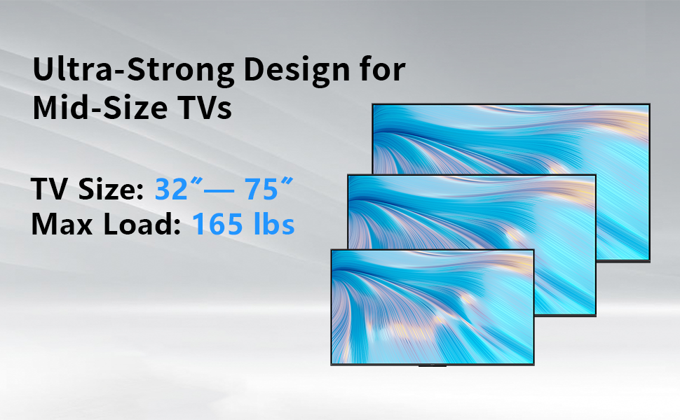 sturdy and durable:This TV wall mount offers reliable strength and durability to ensure your TV lasts, weighs up to 165 lbs and can withstand 75 kg TV.