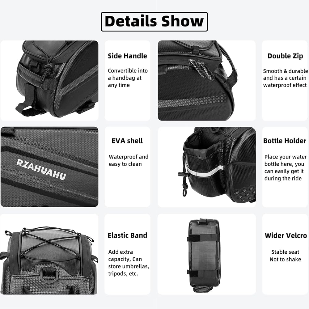 MULTIFUNCTIONAL BIKE ACCESSORY - You can use it as a shoulder bag or handbag depending on the occasion. When off the road, you can use it at work or school. This bike travel bag comes with handles and an adjustable shoulder strap. The pannier bag on the frame can be used not only for cycling, but also as a handbag, hiking bag and shoulder bag for travel, camping, picnics, skiing and other occasions