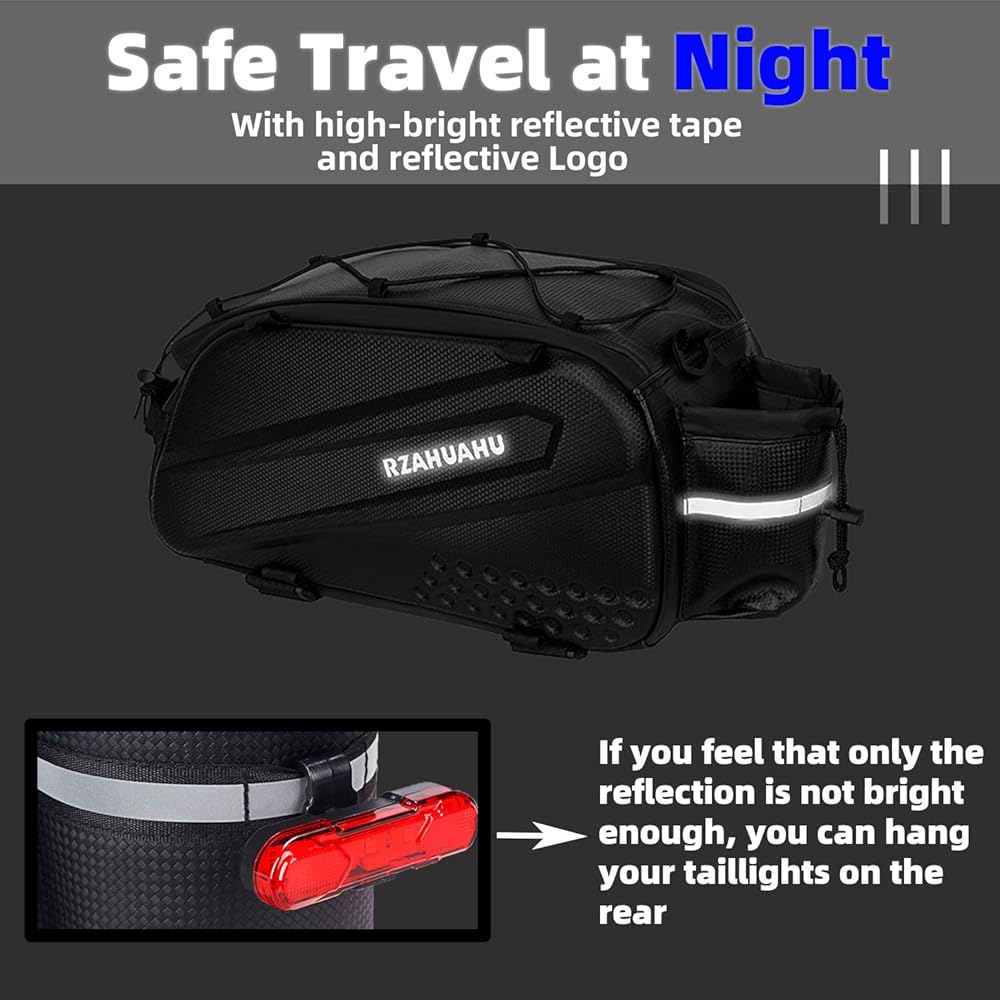TOOL-FREE INSTALLATION - This bike pillion bag comes with 3 adjustable Velcro straps that can be easily installed and removed in seconds, ensuring maximum stability and security of the bag. This bag is not easy to move, shift or move around and helps you to tie down and not get caught in the wheels. Suitable for most bike frames such as mountain bikes, road bikes and electric bikes