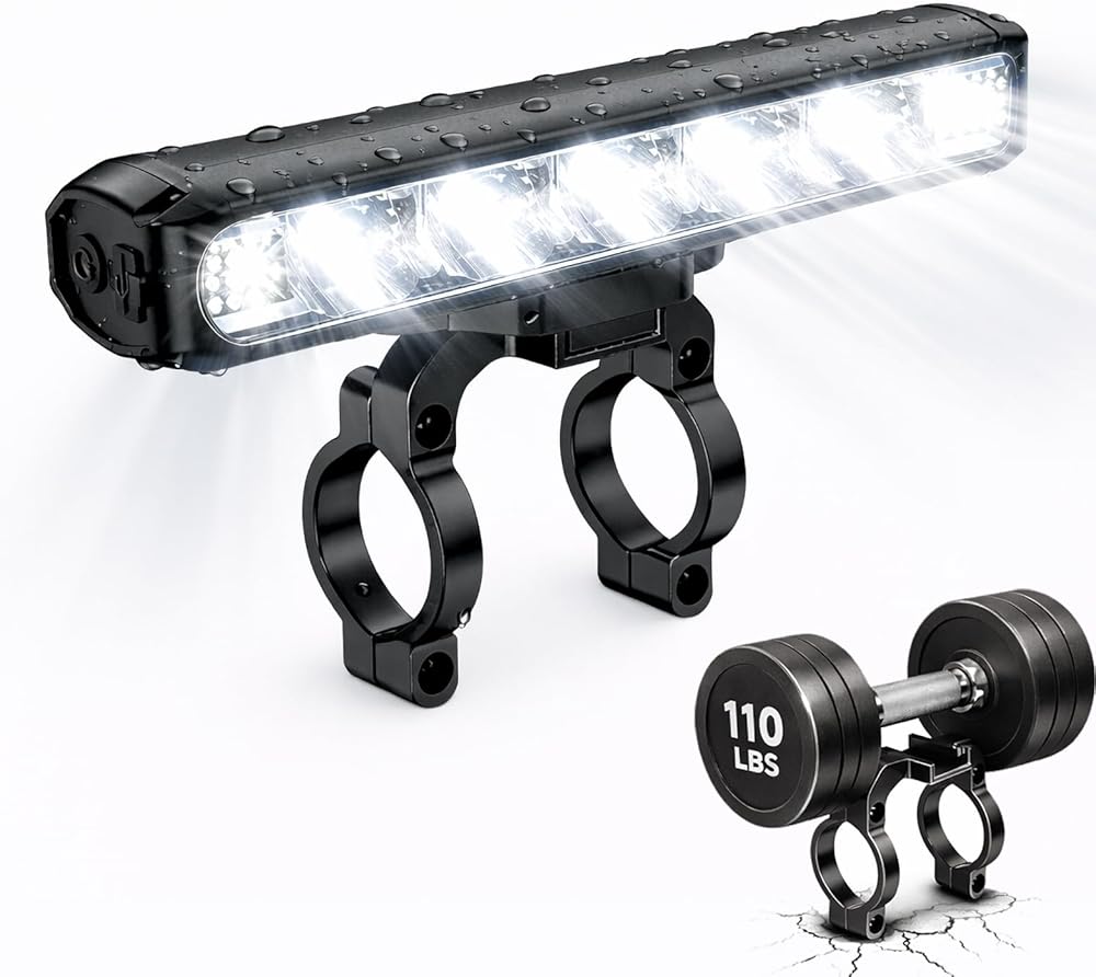 Super Bright & Wide Range: This bike light has 3 LED beads, with a maximum brightness of 1200 lumens. Horizontal design provides an ultra wide range of illumination, light up the road at night.