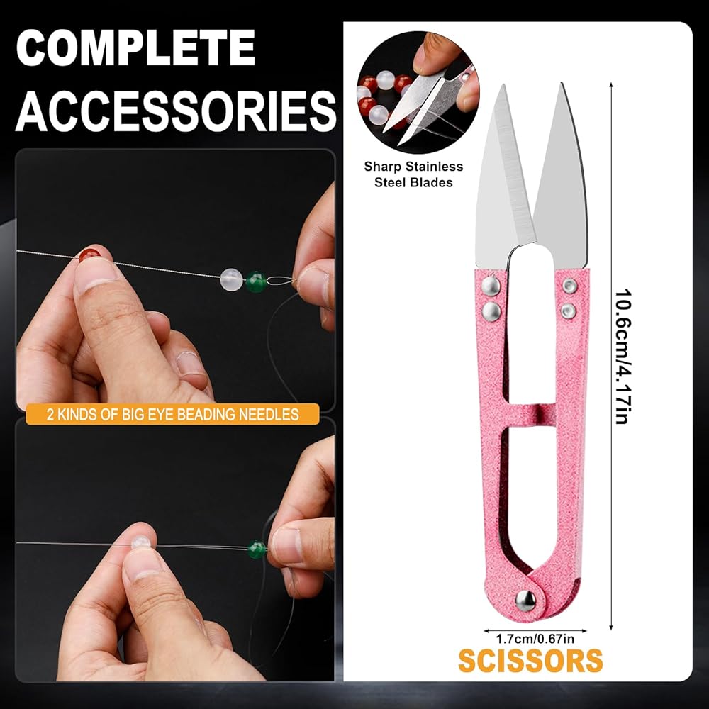 Practical Accessories: This is a basic set of clear elastic beading string, which not only contains 4 sizes of big eye beading needles, but also comes with a yarn scissors and needle threaders, convenient and practical, which can meet the needs of different sizes of beading, and can also help us quickly complete other jewelry making basic needs.