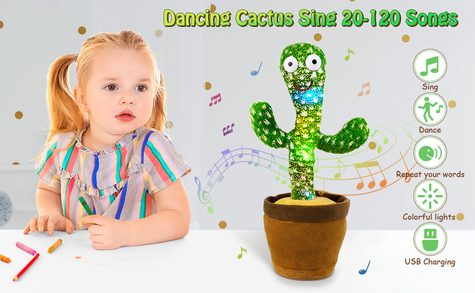 Shayson Dancing Cactus Toy for Kids, Repeating Words, Electric Plush, Early Education & Home Decoration