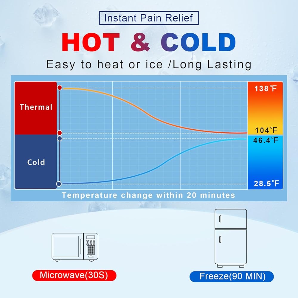 【Heat & Cold Compress】: The ice pack can be frozen for cold in the freezer and heated for warm in the microwave. The coldness will reduce swelling and inflammation and the heat will accelerate the progress of recovery. These packs will meet the demands of heat or cold therapy during your injury recovery.