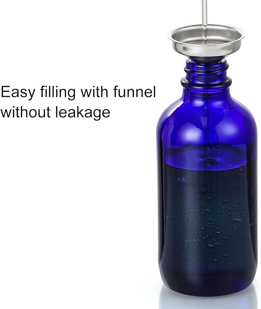Small funnel help fill liquids without leak. Labels help mark names for different liquids.