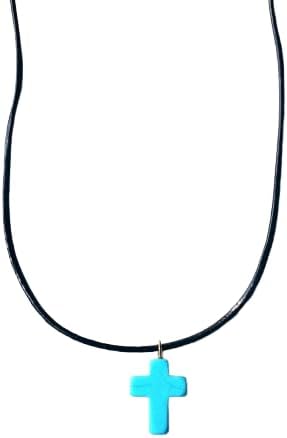 Turquoise Cross Necklace Charm Pendant Leather Cord Choker