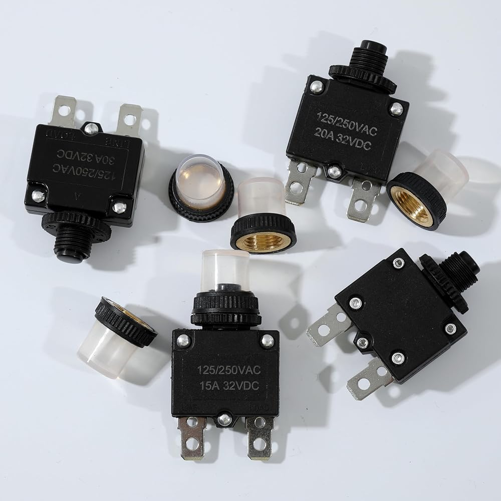 【Parts List】In this amp circuit breakers, you will get 5Pcs 5 Sizes automatic reset thermal circuit breaker assortment kit, including 5Amp,10Amp,15Amp,20Amp, 30Amp and 5Pcs waterproof button caps .