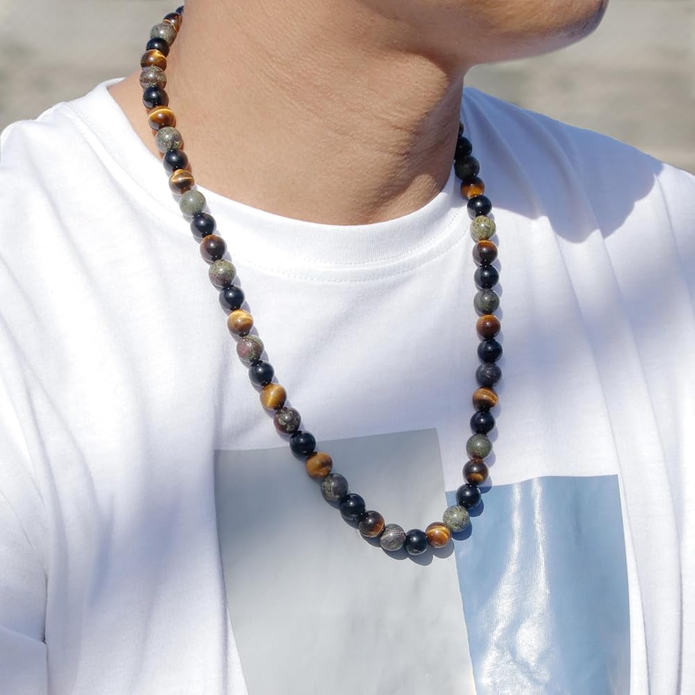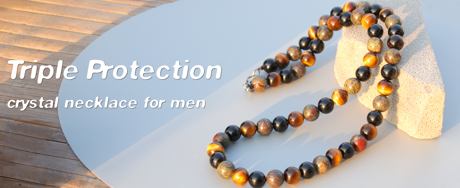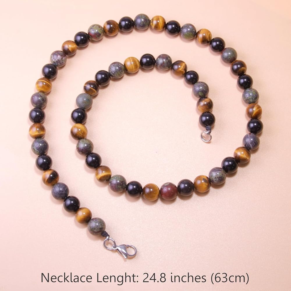 Excellent Quality Material: Our triple protection men's beaded necklace is made up of high-quality tiger eye, dragon bloodstone and black obsidian beads.
