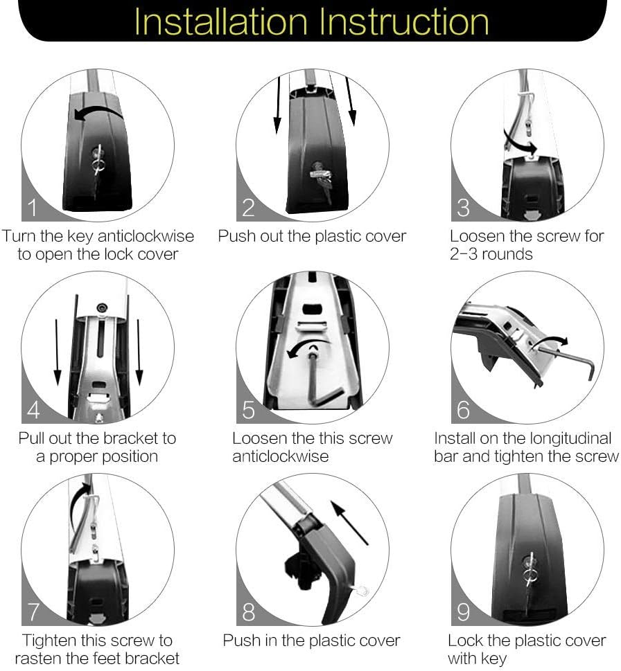 【Adjustable Roof Racks with Locks】The design of adjustable grips, in order to fit the cars vehicles SUVs raised roof side rails.The lock and key allow the roof rack to have an anti-theft function, increase the safety.