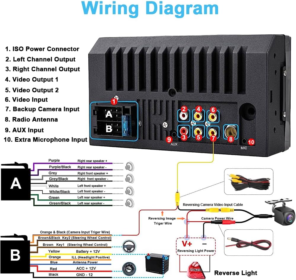 🚘Supports Rear Camera Input: The unit equipped with a 170° wide HD angle night vision waterproof camera,The camera Compare with simple bonded edges glue sealed IP68 waterproof camera. Our IP69K high rate waterproof camera is fully sealed glue filling craft, which will more effectively protect it from water and foggy in the camera after long time use. The system will display the image automatically when the vehicle shifts into reverse, working as a parking assistance.