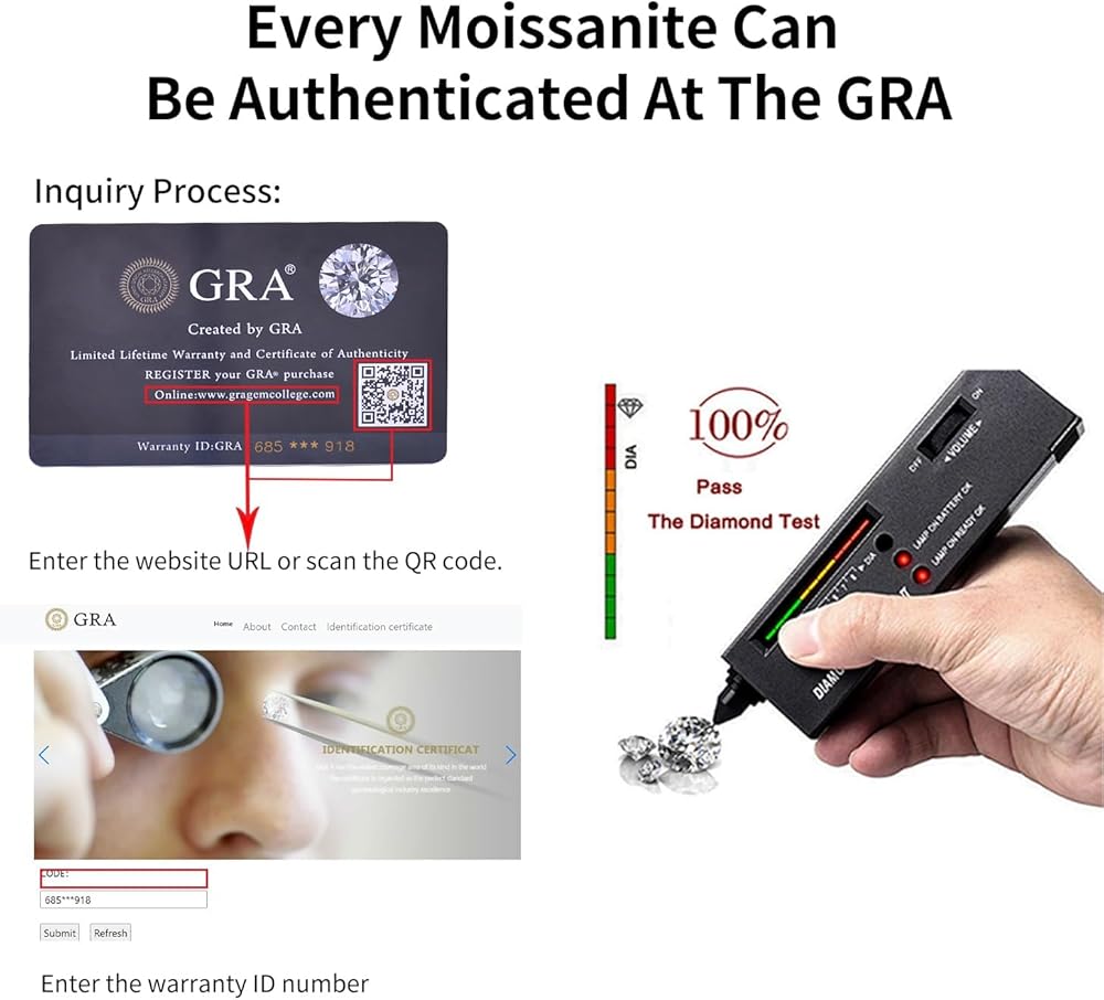 Certified Genuine Moissanite - Certified through the GRA official website, ensuring that you get genuine moissanite.