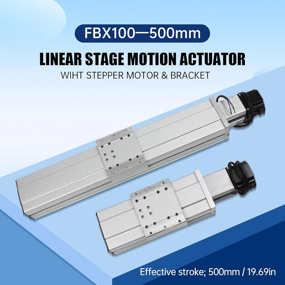 【 Product Components】 Nema23 motor + motor bracket + coupling + motor flange + 1605 ball screw + double track guide rail and slide block + slide table + base + stable support seat + bearing seat + metal cover plate.