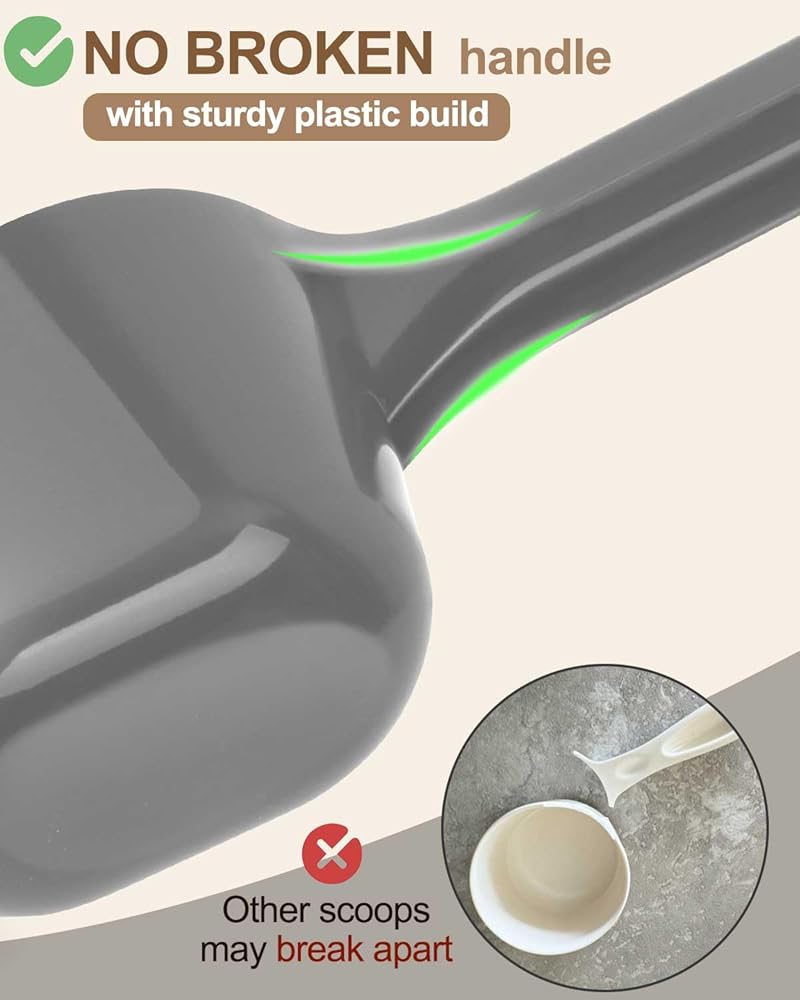 Perfect for scooping pet food,ice, flour, sugar,coffee beans, cereal and more.