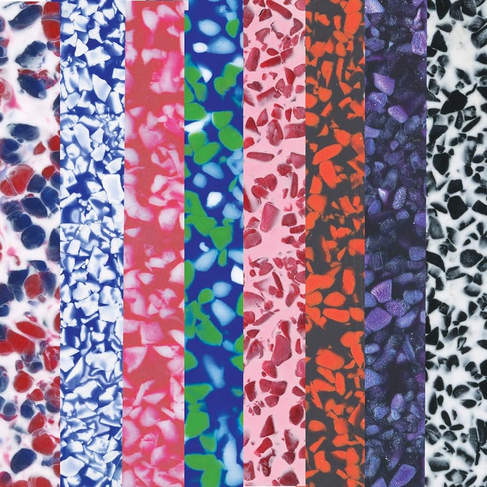You'll receive (16) 5/8" x 5/8" x 5" Square Funline Acrylic Pen Blanks. Blanks will arrive raw and unfinished; Polishing needed to bring out the bright, vibrant, glossy appearance. WXFUN97 Group C includes (2) each of the following colors: Blue & White Swirl, Copper Swirl, Purple Crush, White & Blue Swirl, Marron & Yellow Swirl, White & Black Swirl, Red & White Swirl, Black & White Swirl. Color and pattern can vary slightly due to the process of pouring, swirling, and hardening of acrylic penturning stock material. Variety of blank colors allow you to easily match with different pen kit finishes. Ideal for using on many woodturning project kits that are compatible with these dimensions. Use sharp tools and light cuts when turning the blanks on your lathe.