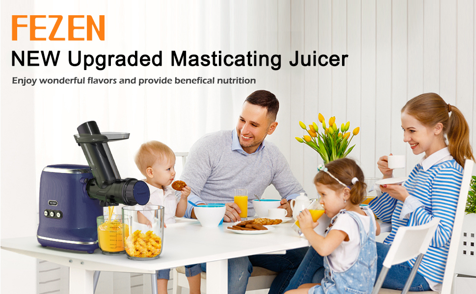 Juicer Machines, FEZEN Cold Press Electric Juicer with 3.2INCH Feed Chute, High Juice Yield, Easy to Clean Masticating Juicer for Nutrient Fruit and Vegetables, Pure Juice