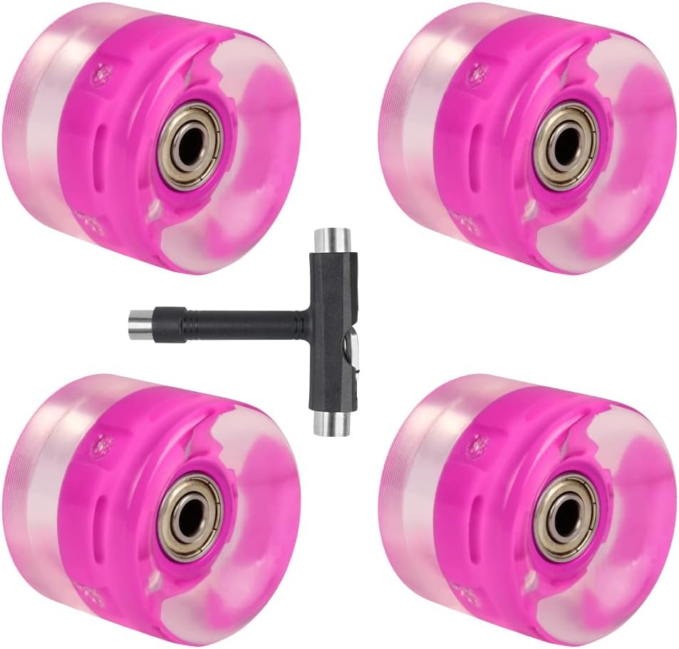 Light Up Skateboard Longboard Wheels 58mm X 45mm 82A with Bearings ABEC-7 and All-in-One T Tool (Set of 4), Cruiser Replacement Wheels for Street Skateboards