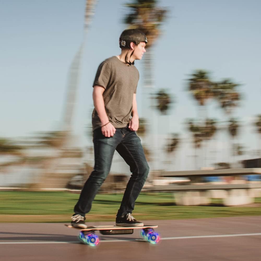 COLORFUL CRUISING AT DARK NIGHTS:The luminescence principle of cruising wheels is the magnetic core through high-speed rotation to achieve the luminous effect(No battery).Will give colorful visual experience at night,especially for kids,but need to be SLOW DOWN and CAREFUL AT NIGHT.