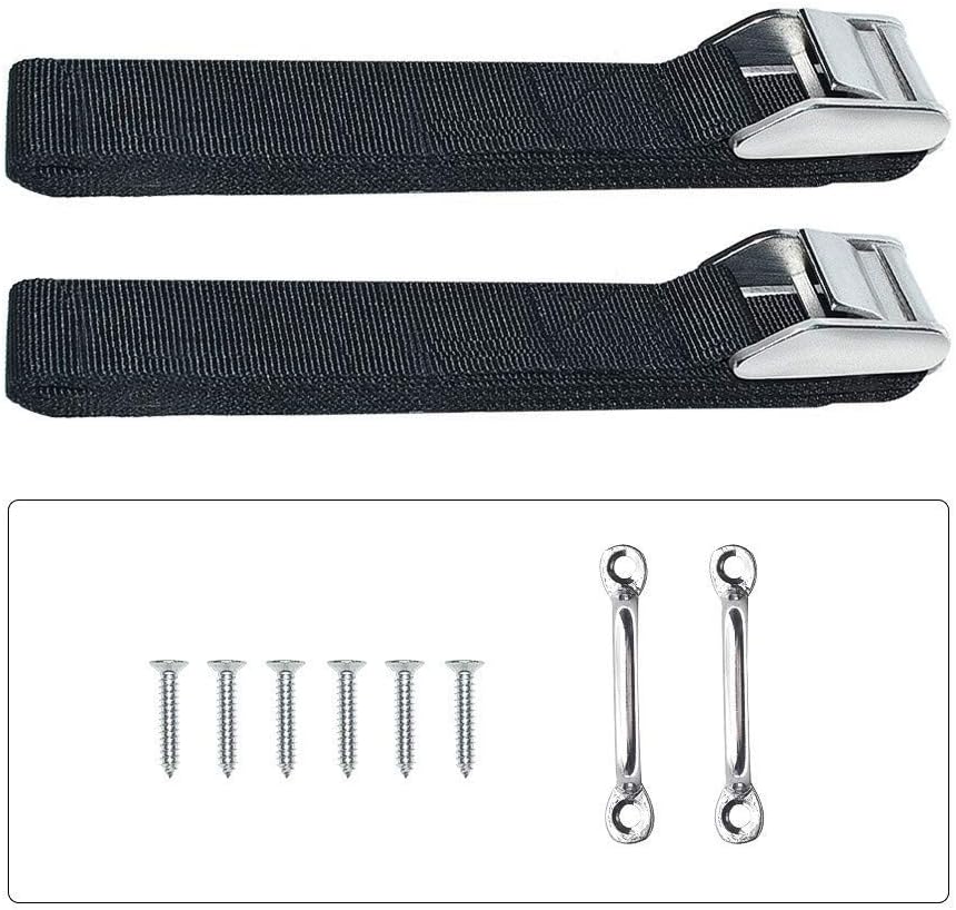 Battery Box Hold-Down Strap Tie Down Strap for Gas Fuel Heavy Duty Battery Box Replament Tie Down Strap Kit Anti-UV Strap with Stainless Steel Cam Buckle, Stainless Steel Deck Loop Mounts, SS Screws
